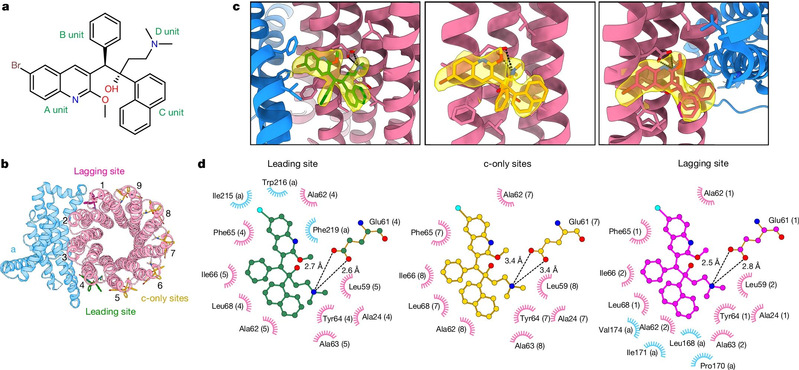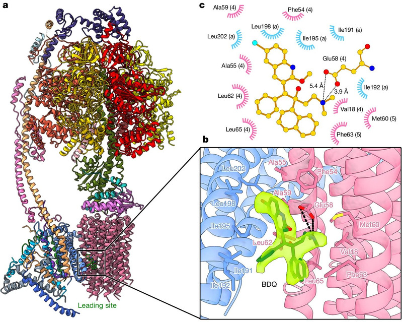В конечном итоге, исследователи обнаружили, что как у Бедаквилина, так и у TBAJ-587 существует перекрестная реакция с АТФ-синтазой человека. Затем с помощью метода криоэлектронной микроскопии исследователи успешно раскрыли структуру АТФ-синтазы человека, связанной с Бедаквилином (см. рис. 3). Было установлено, что TBAJ-587, созданный на основе редизайна групп B и C в Бедаквилине, только снижает риск сердечной аритмии, вызванной взаимодействием с белком hERG, и лишь оптимизация редизайна группы A может снизить взаимодействие с АТФ-синтазой человека, чтобы избежать потенциального риска для здоровья при клиническом лечении.
